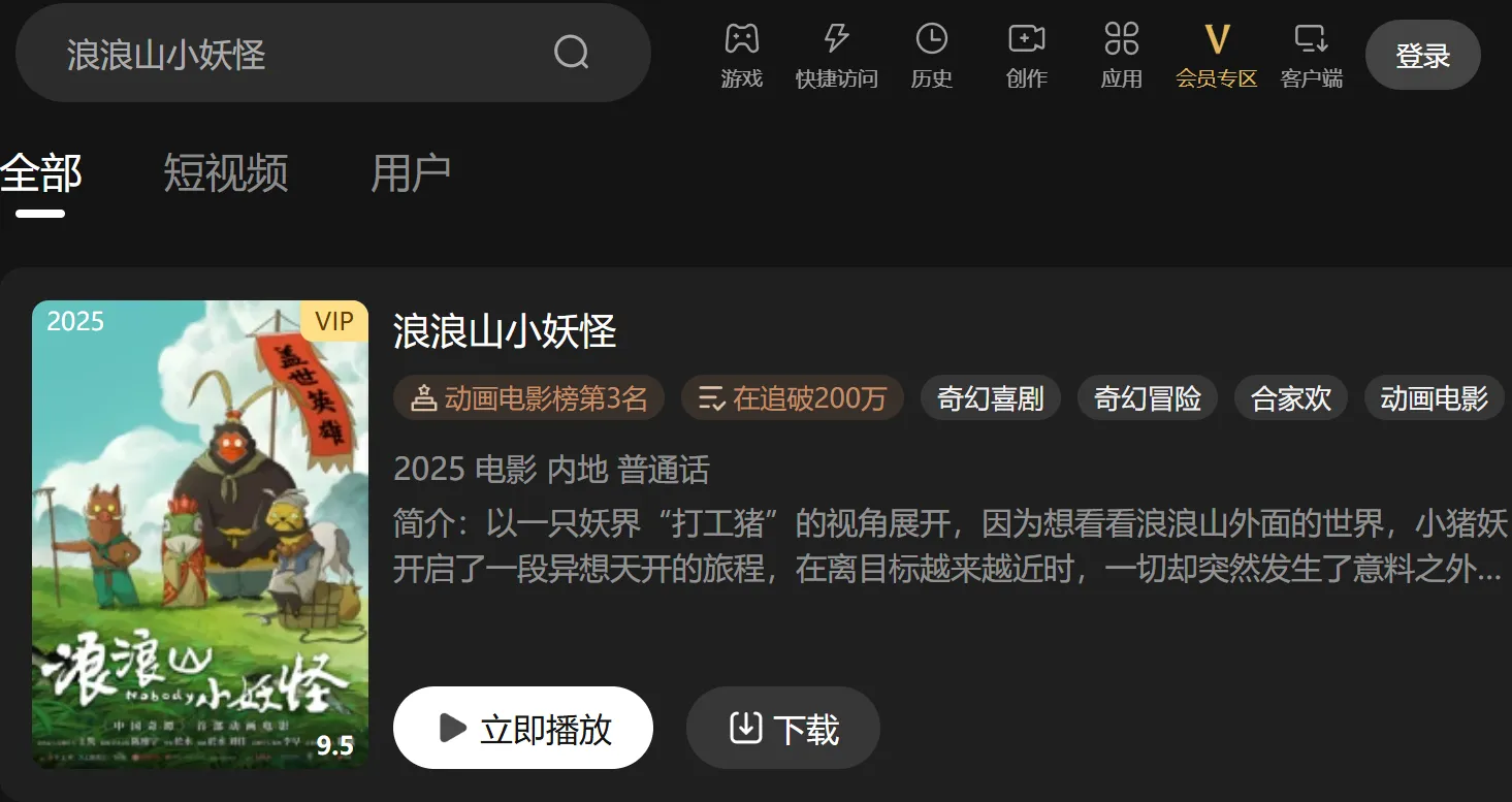 | Langlang Shan Xiao Yaoguai (Nobody) | 2025's best-reviewed film. A "workplace" fable about a small pig demon in the Journey to the West world. | Tencent Video | 7.53 |