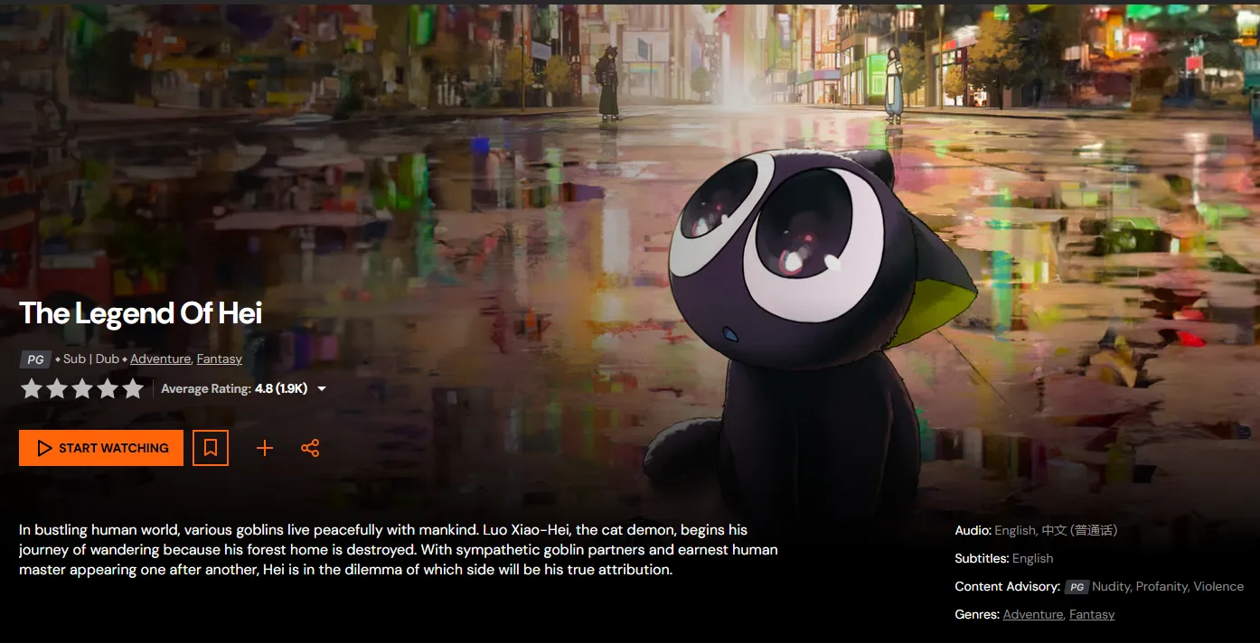 Plot Summary: Xiao Hei is a cat demon whose forest home has been destroyed by human expansion. After wandering the city, he is recruited by a group of fellow spirits who promise him a new home. However, he soon meets Wuxian, a human "Guild" executor, and begins a journey to understand the delicate balance between their two worlds.