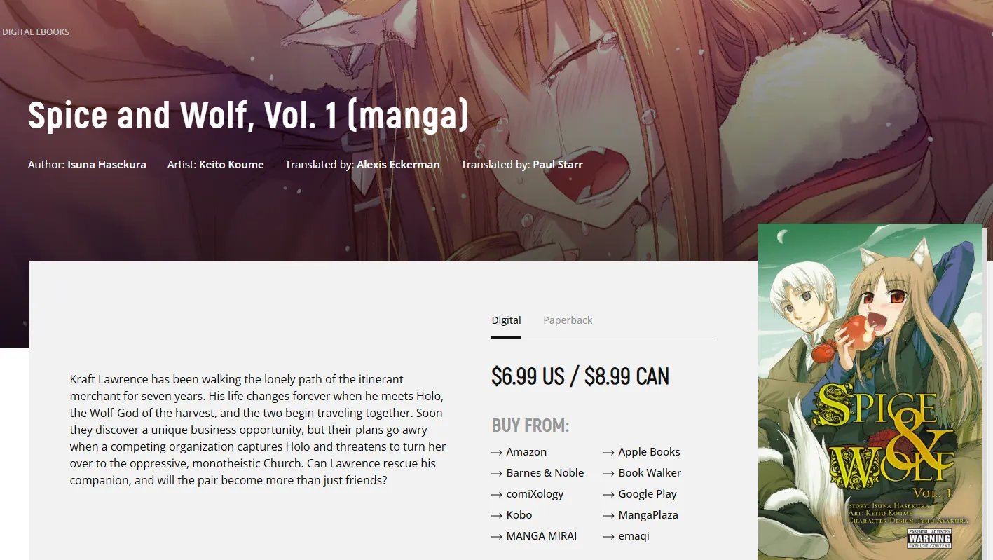| Spice and Wolf | Atmospheric | Nature lovers | Wheat fields and old-world travels. | Yen Press | 8.46 |