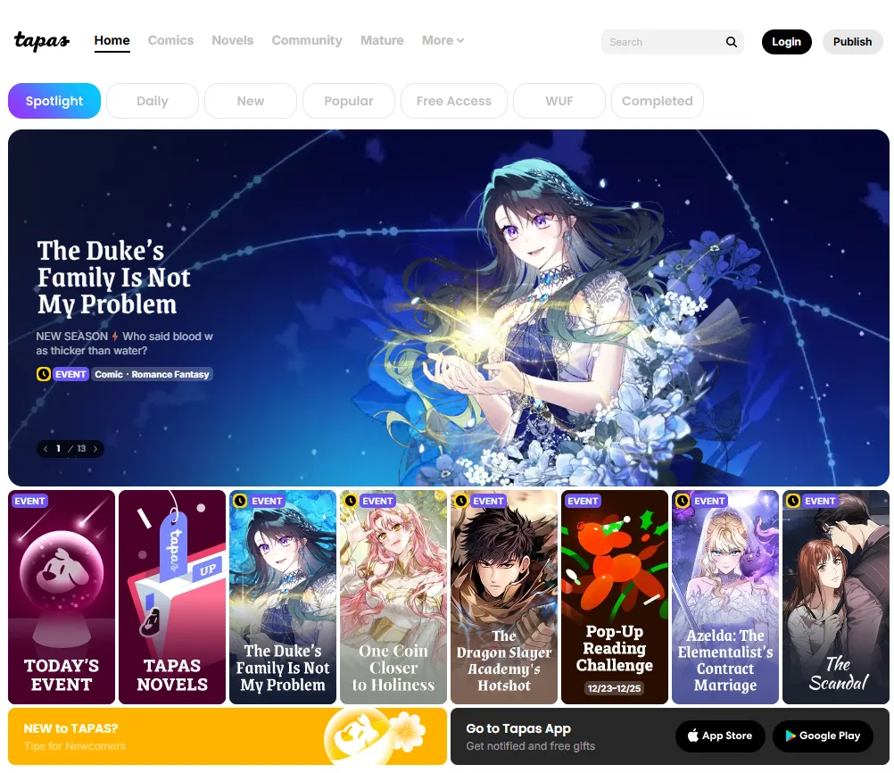 5. If you character development and emotional stories matter most and enjoy interacting with other readers and creators, choose Tapas. Its community features and algorithm are tailored for romance, fantasy-romance, and everyday stories. The “Wait Until Free” system is forgiving for patient readers.