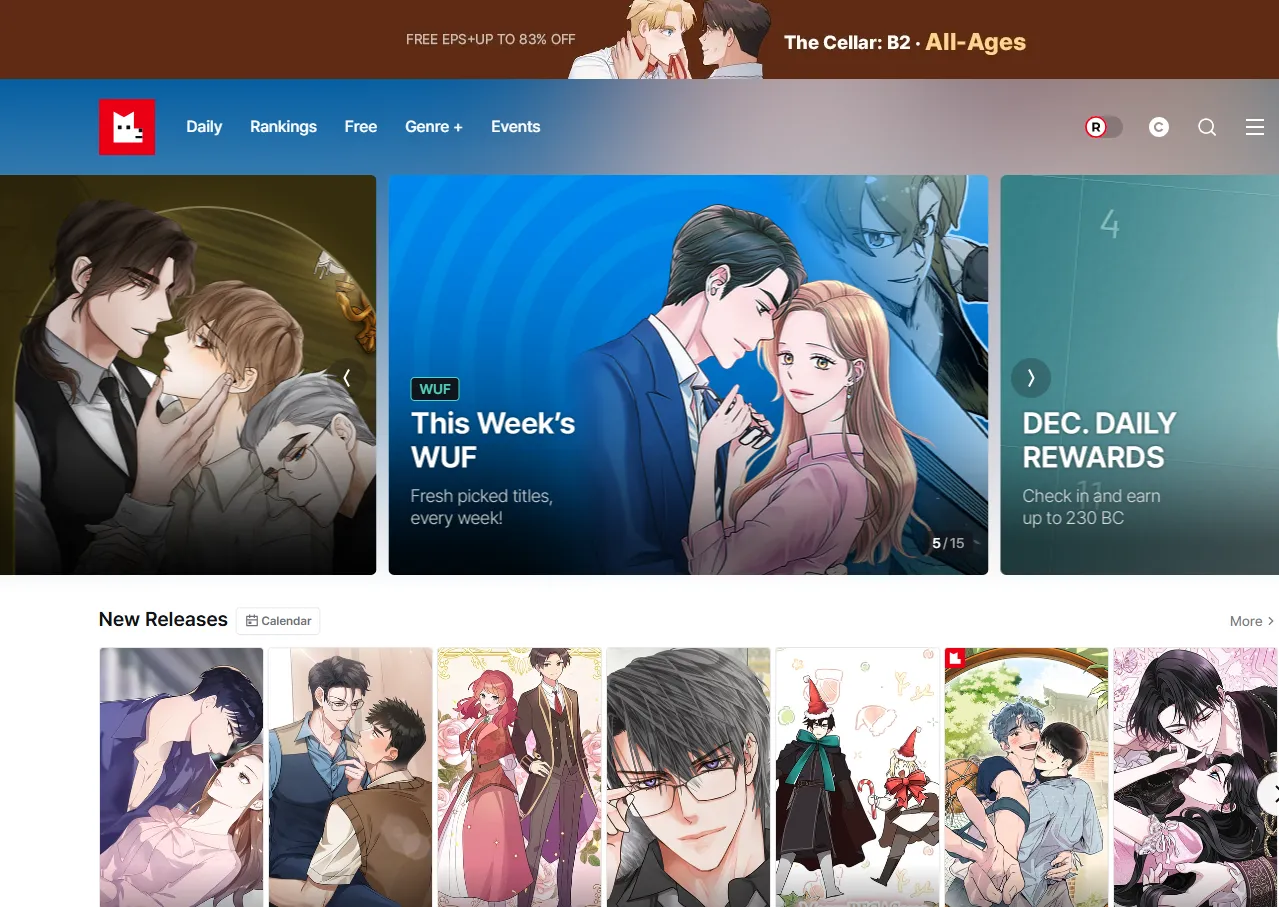 Content & Audience: As the originator of the webtoon format, Korean comics are its absolute core. It is the primary overseas publishing platform for major Korean studios and the first stop for global hits. Landmark titles that defined genres, such as Tower of God, True Beauty, and Lookism, all originated here.
