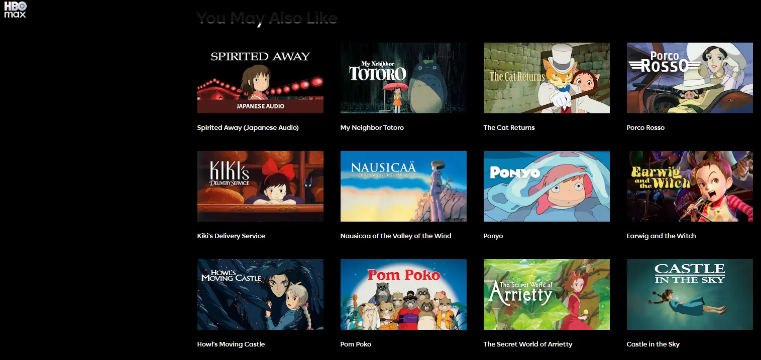 Basic Overview:Max (formerly HBO Max) is a U.S.-based streaming service owned by Warner Bros. Discovery. It offers a wide range of content including movies, TV shows, documentaries, and exclusive HBO programming. Max is home to the entire Studio Ghibli collection in the U.S., making it the go-to platform for streaming Hayao Miyazaki’s films. In addition to the Ghibli catalog, Max features blockbuster movies, original HBO series like Game of Thrones, and a variety of films from Warner Bros., New Line Cinema, and DC Comics. Max also includes a selection of other anime series and films, making it a great platform for anime lovers.