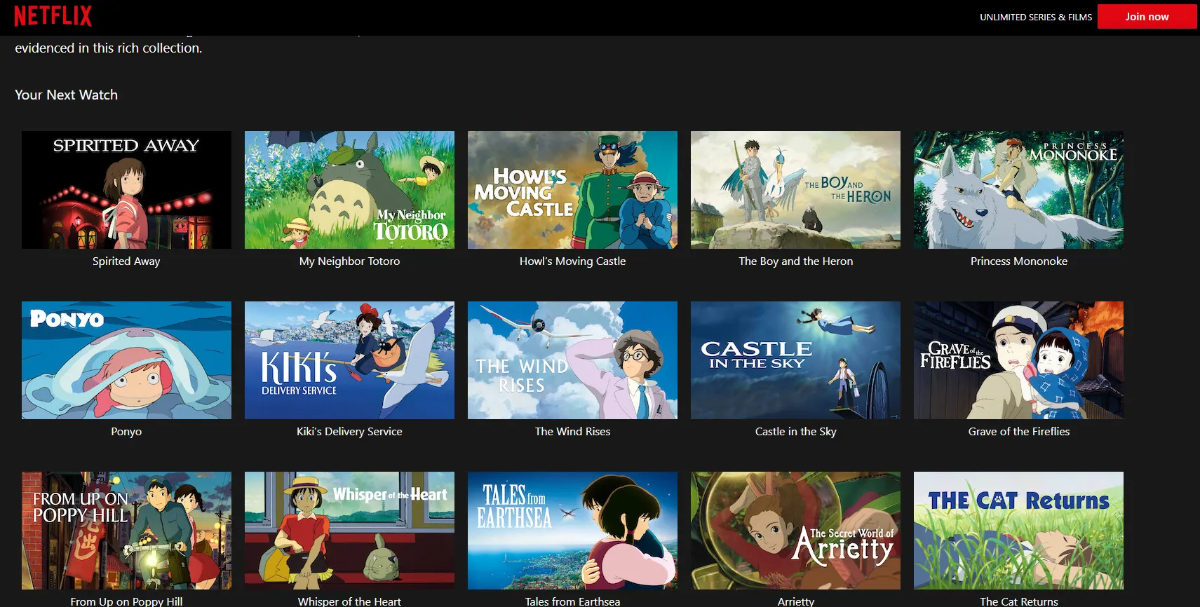 Basic Overview:Netflix is a global streaming service, available in nearly every country around the world. It provides a vast selection of TV shows, movies, documentaries, and original programming. Netflix is one of the leading streaming platforms worldwide, and it recently secured the rights to stream Studio Ghibli films outside of the U.S. and Japan. Netflix’s Ghibli catalog is available for regions like Europe, Latin America, and Asia, where users can access the full collection of Hayao Miyazaki’s films along with other Ghibli works. Netflix also offers a variety of original programming, including acclaimed shows like Stranger Things, The Crown, and The Witcher.