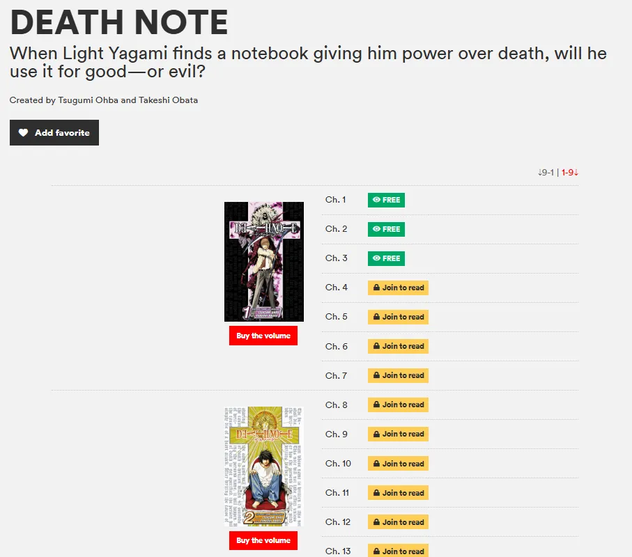 Deluxe Plan ($4.99 / month): The "Kira" Choice: This plan unlocks the entire vault of completed classics, including all of Death Note. Completely ad-free and supports high-definition "Vertical" or "Horizontal" reading modes.
