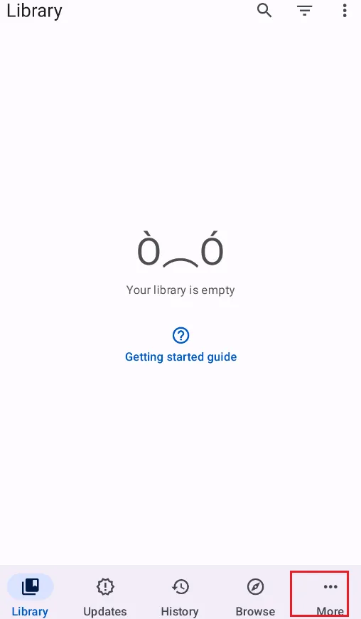 After installation: Open Mihon. You'll see an empty library and no manga sources—that's normal.