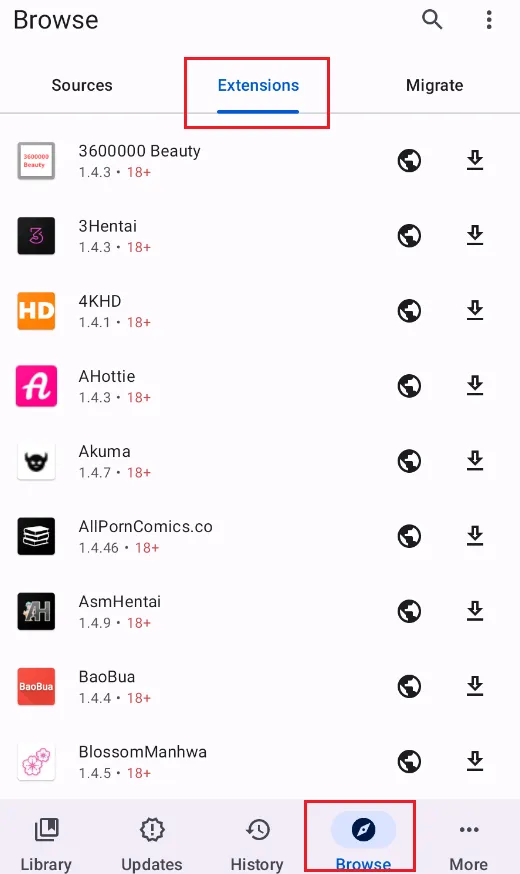 Extensions don't always update with the app. Go to Browse > Extensions. If an update is available, you’ll see an "Update" button. Check this weekly to ensure your sources remain functional.
