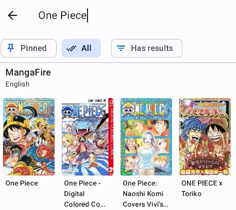 | Search results show nothing for a popular manga | Try a different extension. Not all sources have every manga. |