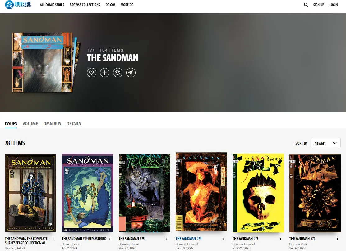 | The Sandman | Dark Fantasy | 4.54 | DC Universe Infinite | Neil Gaiman’s magnum opus; a philosophical journey through dreams and myths. |