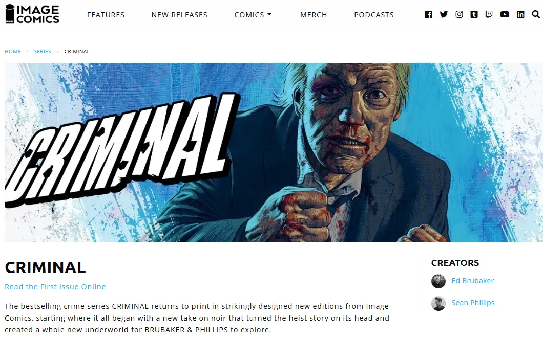 Synopsis: Criminal is a series of interconnected crime stories featuring thieves, con artists, detectives, and other morally ambiguous characters. Each story explores betrayal, greed, and survival in gritty, realistic urban settings. The series examines human nature under pressure, highlighting ethical dilemmas and the consequences of choices, blending suspense, noir, and dark humor into tightly plotted narratives.