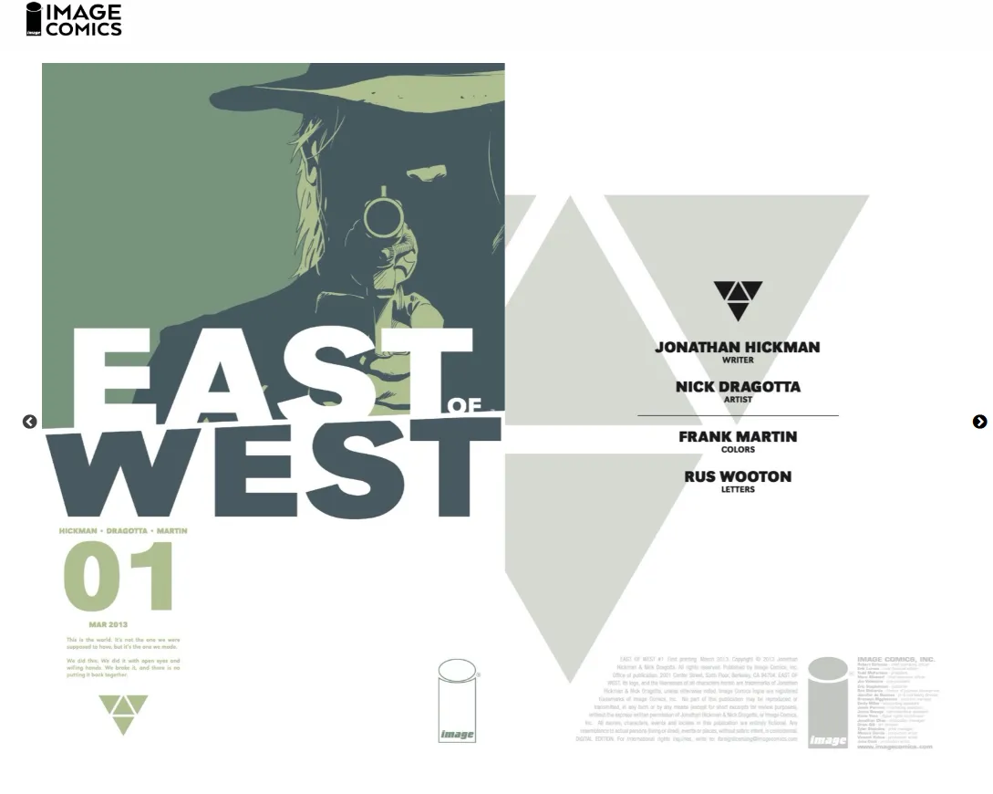 Synopsis: East of West is set in an alternate America where the Four Horsemen of the Apocalypse roam a dystopian landscape. The story follows various factions vying for power, including bounty hunters, revolutionaries, and the Horsemen themselves. Themes of fate, vengeance, and political manipulation drive a plot full of intrigue and moral ambiguity, combining science fiction, Western motifs, and dark fantasy into an unforgettable epic.