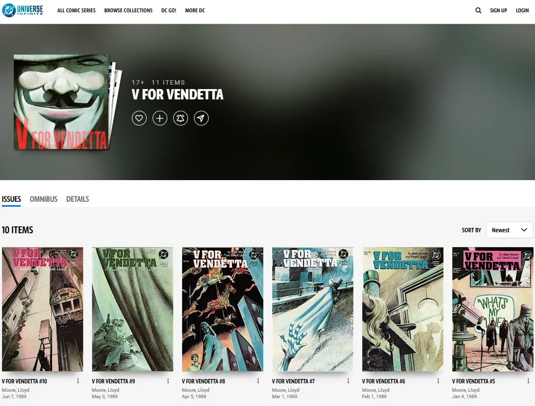 | V for Vendetta | Political Dystopia | 4.25 | DC Universe Infinite | An iconic tale of anarchism, identity, and resistance against totalitarianism. |