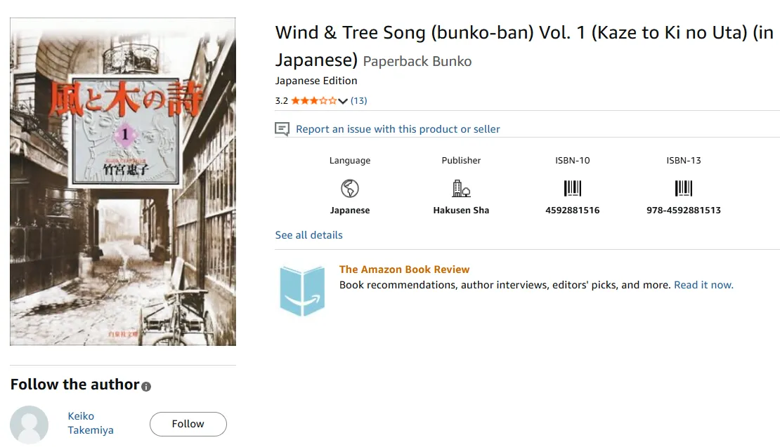7. Kaze to Ki no Uta (1976) — Keiko Takemiya