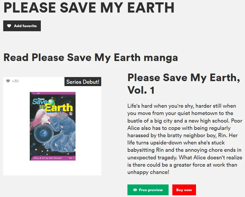 | Please Save My Earth | Sci-Fi / Mystery | Complex reincarnation mystery involving the Moon. | VIZ Media | 8.11 |