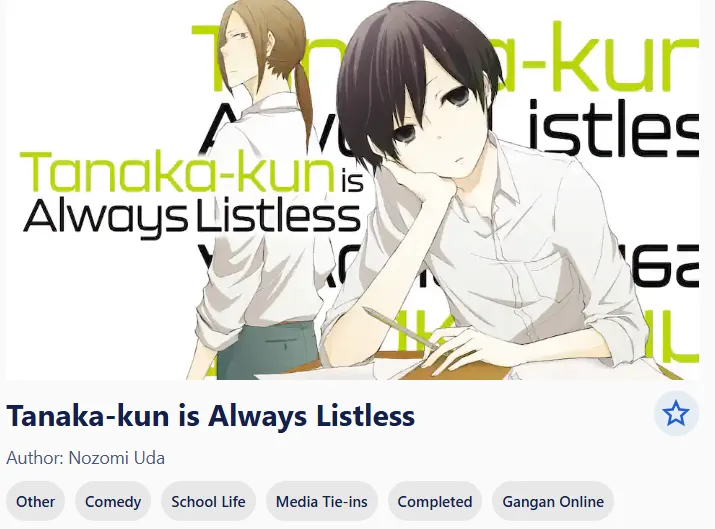 | Tanaka-kun Is Always Listless | ★★★★★ | Ultra-low-energy lifestyle comedy centered on peaceful social interactions | Manga UP! | 8.07 |