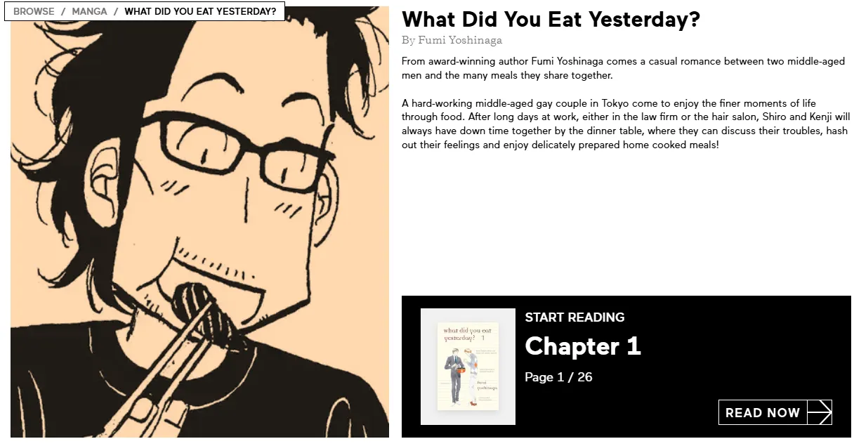 | What Did You Eat Yesterday? | ★★★★☆ | Quiet domestic life centered on cooking, routines, and subtle relationships | Kodansha | 7.53 |