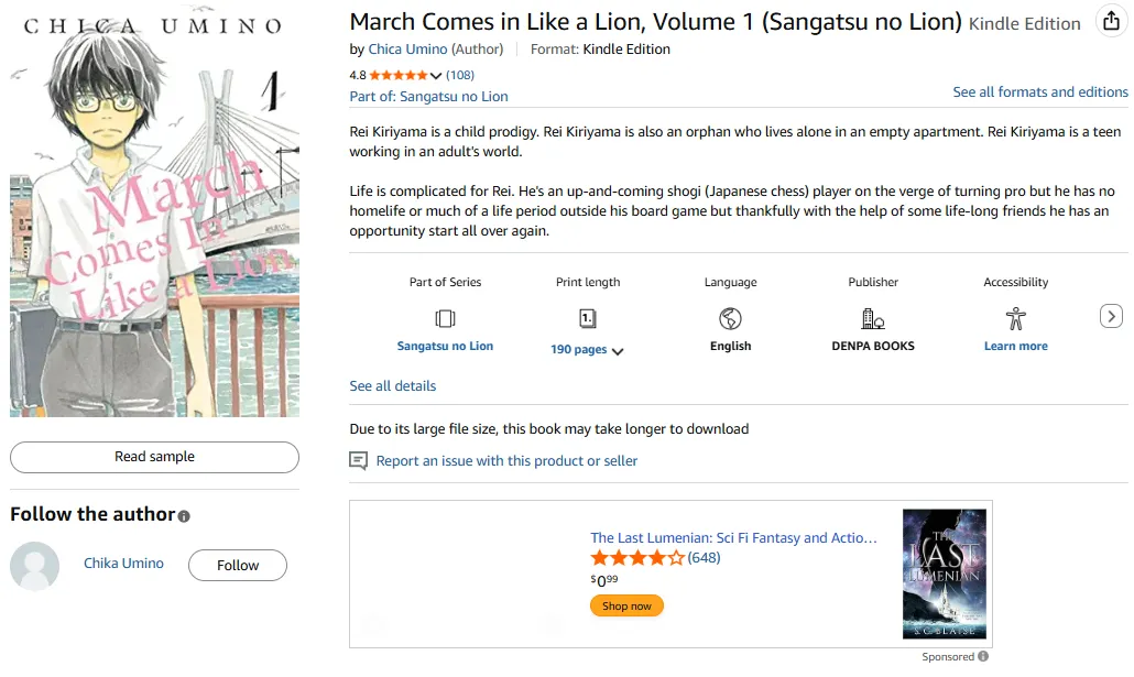 | March Comes in Like a Lion | ★★★★★ | Deep emotional storytelling about loneliness, growth, and healing through human connection | Amazon | 8.86 |