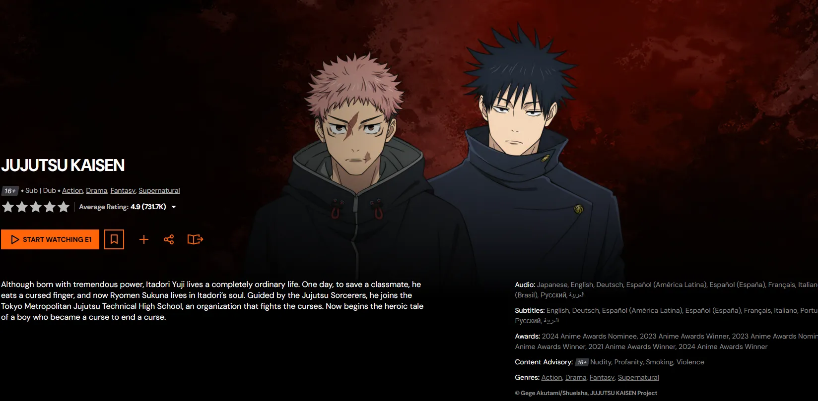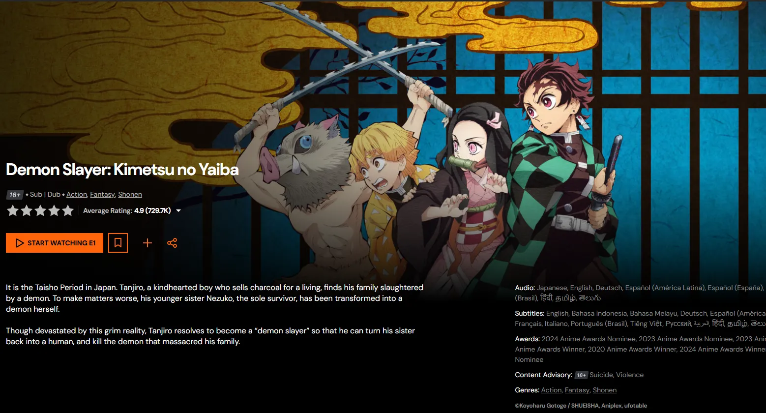 | Demon Slayer | Kokushibo | Six-Eyed Stare: The moon-breathing pressure of the Upper Moon 1. | Nightmare | Crunchyroll, Netflix | 8.41 |