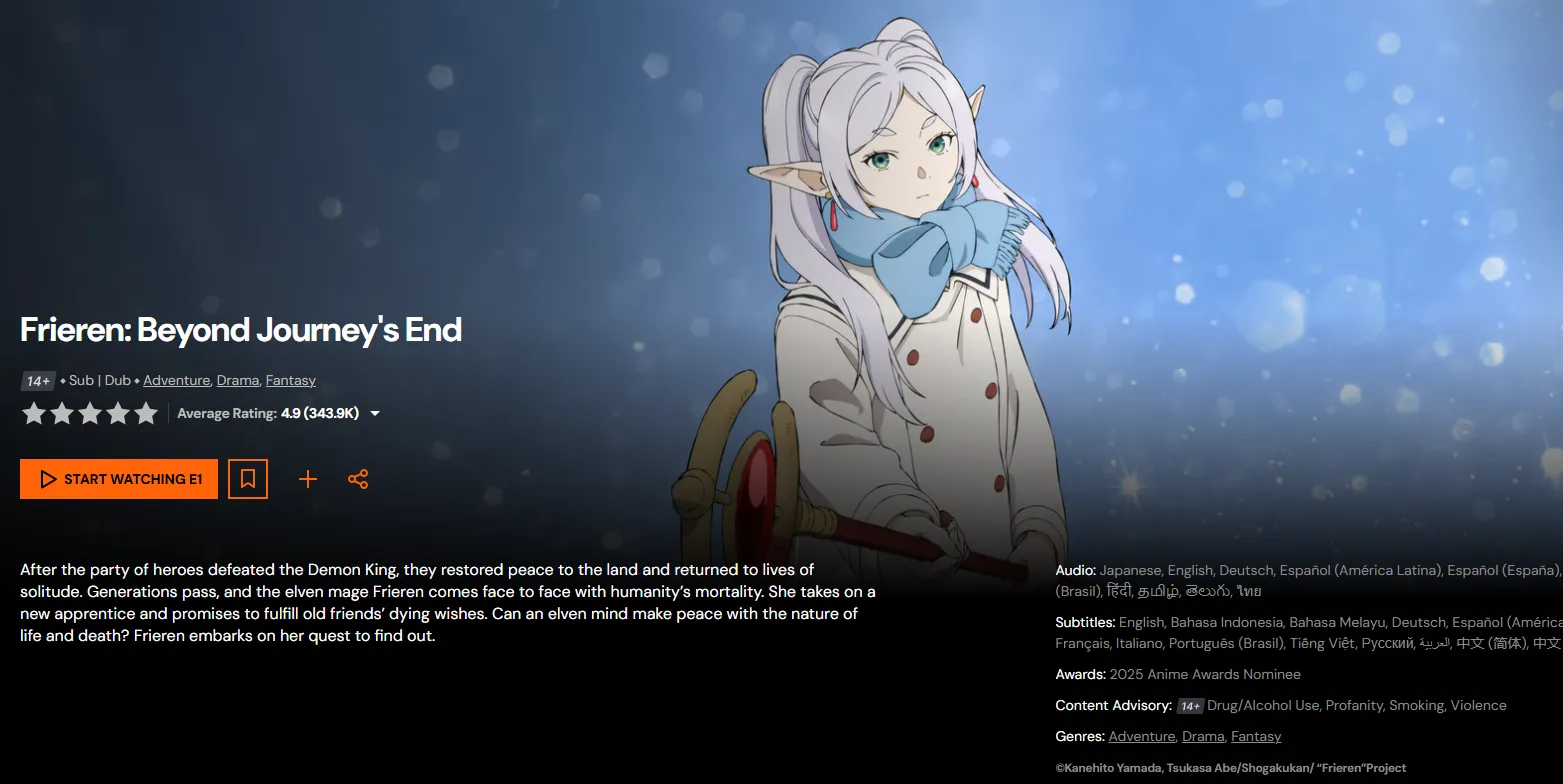 | Frieren: Beyond Journey's End | Himmel | Heroic Legacy: A legend whose smile still controls the vibe. | Moonlight | Crunchyroll | 9.26 |