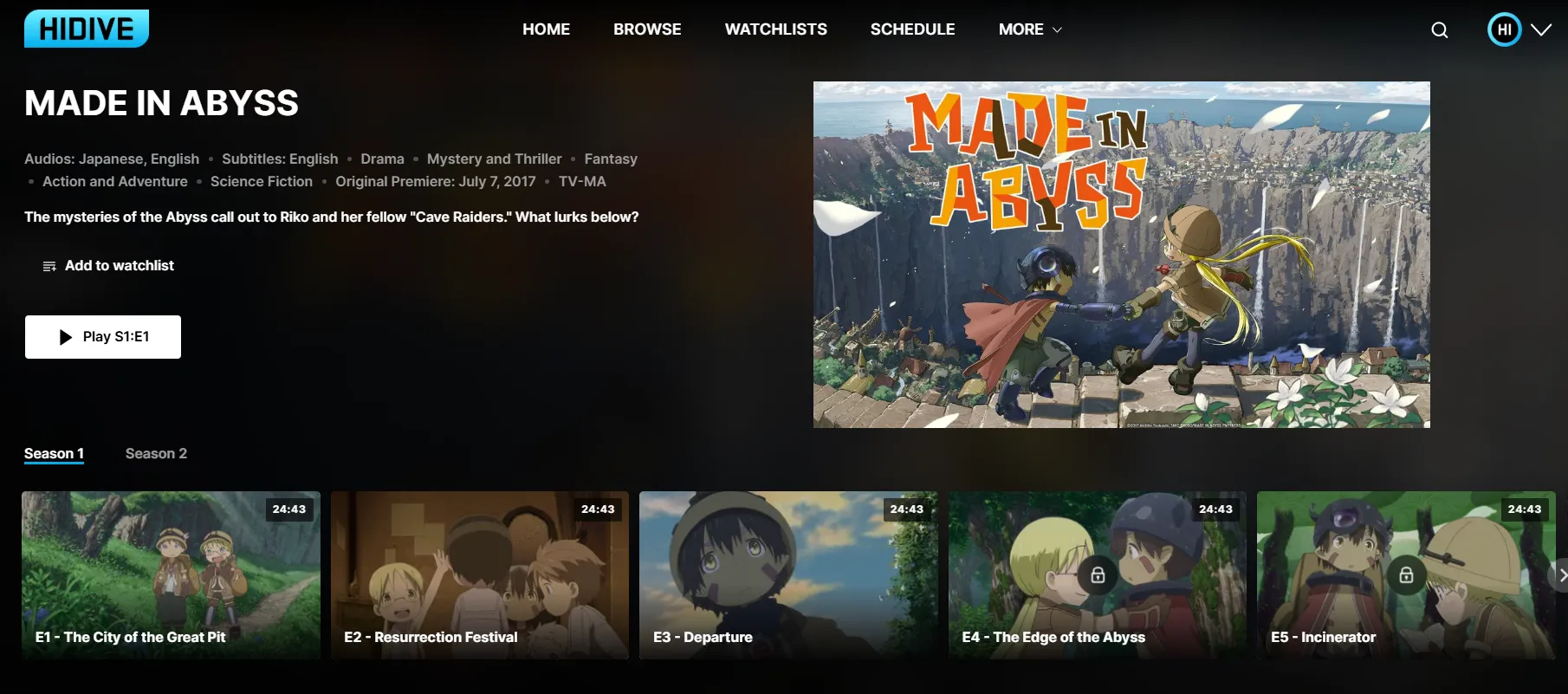 | 2017 | Made in Abyss | Exploring a beautiful world filled with biological horror. | HIDIVE | 8.63 |