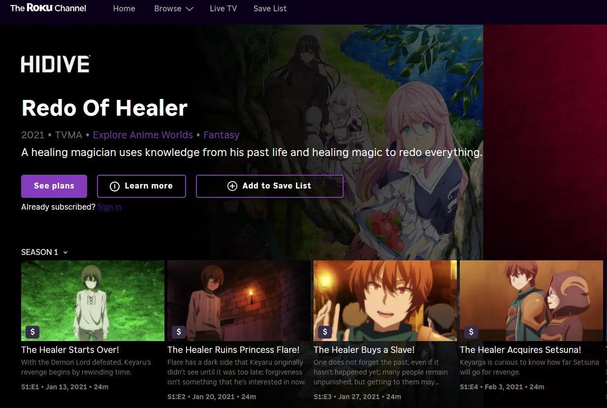 | 2021 | Redo of Healer | (Note: Taboo) Extreme revenge-driven adult fantasy. | Roku | 6.31 |