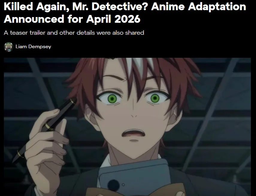 | Killed Again, Mr. Detective? | Death-Loop | 2026 New! A detective who dies and resets to solve his own murder. | Crunchyroll (April 2026) | N/A |