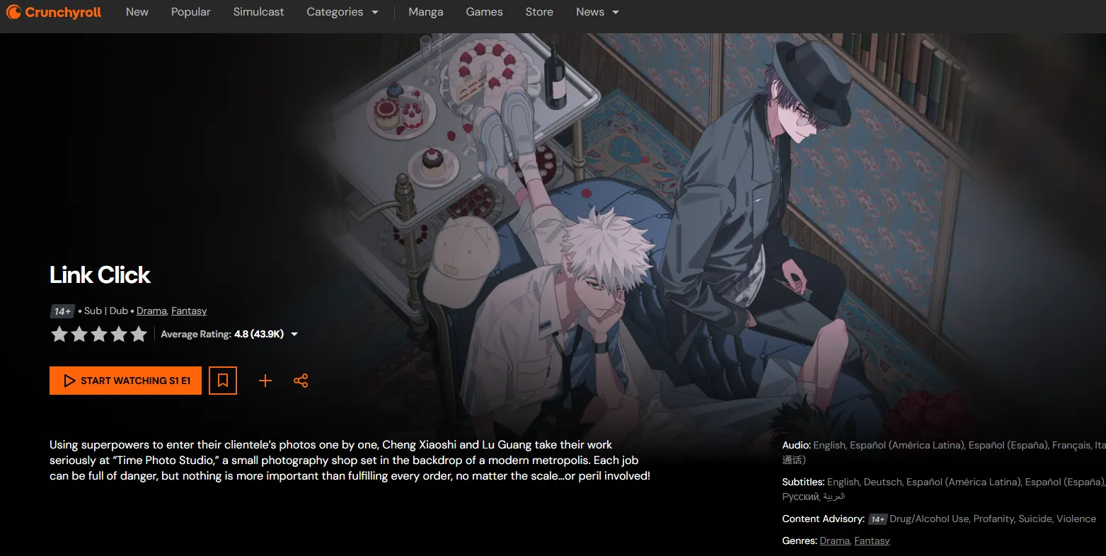 | Link Click | Photo-Leaping | Traveling through photos to change the past and solve cold cases. | Crunchyroll | 8.71 |