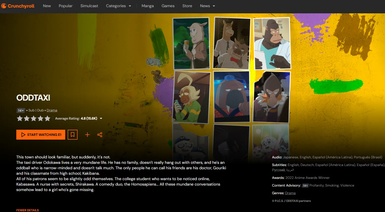 | Odd Taxi | Mosaic Mystery | Every seemingly random event leads to one giant puzzle. | Crunchyroll | 8.63 |