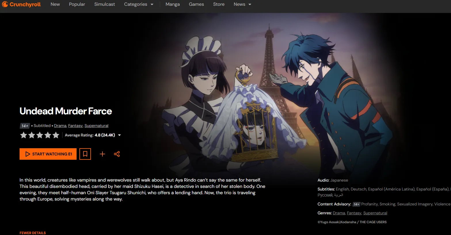 | Undead Girl Murder Farce | Historical / Battle | A monster-hunting detective duo in 19th-century Europe. | Crunchyroll | 7.84 |