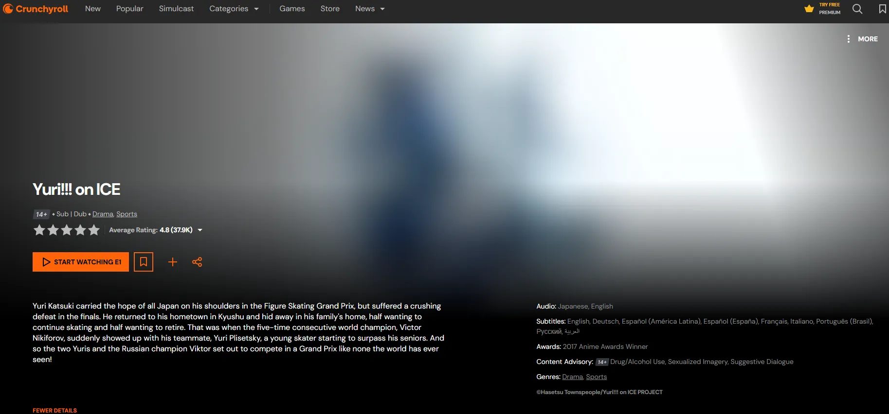 The Premise: Yuri Katsuki, a Japanese figure skater struggling with confidence after a crushing defeat, returns home to reconsider his future. His life changes when he meets Victor Nikiforov, a world-renowned champion who becomes his coach. With Victor’s guidance, Yuri begins to rebuild his skills, regain confidence, and confront his personal doubts. Alongside rival skaters, including his passionate competitor Yuri Plisetsky, he competes in international competitions, learning not only about skating techniques but also about resilience, ambition, and self-expression. The series follows Yuri’s journey to rediscover his love for the sport, grow as an athlete, and navigate the complex relationships and emotions intertwined with competitive figure skating.