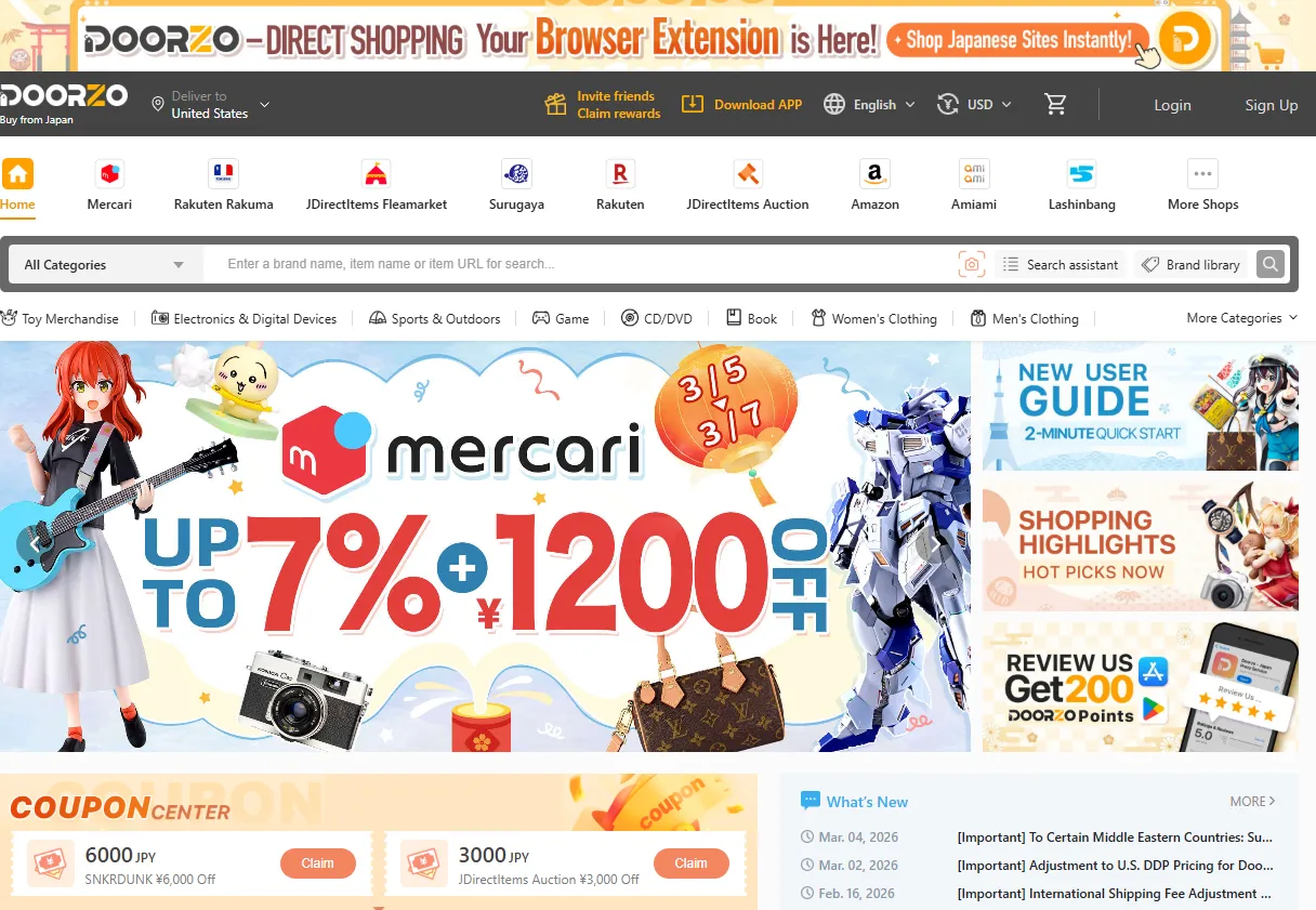 Note: Doorzo is famous for its "0 JPY Service Fee" campaigns for specific platforms like Rakuma or Mercari Shops, which happen almost every month.