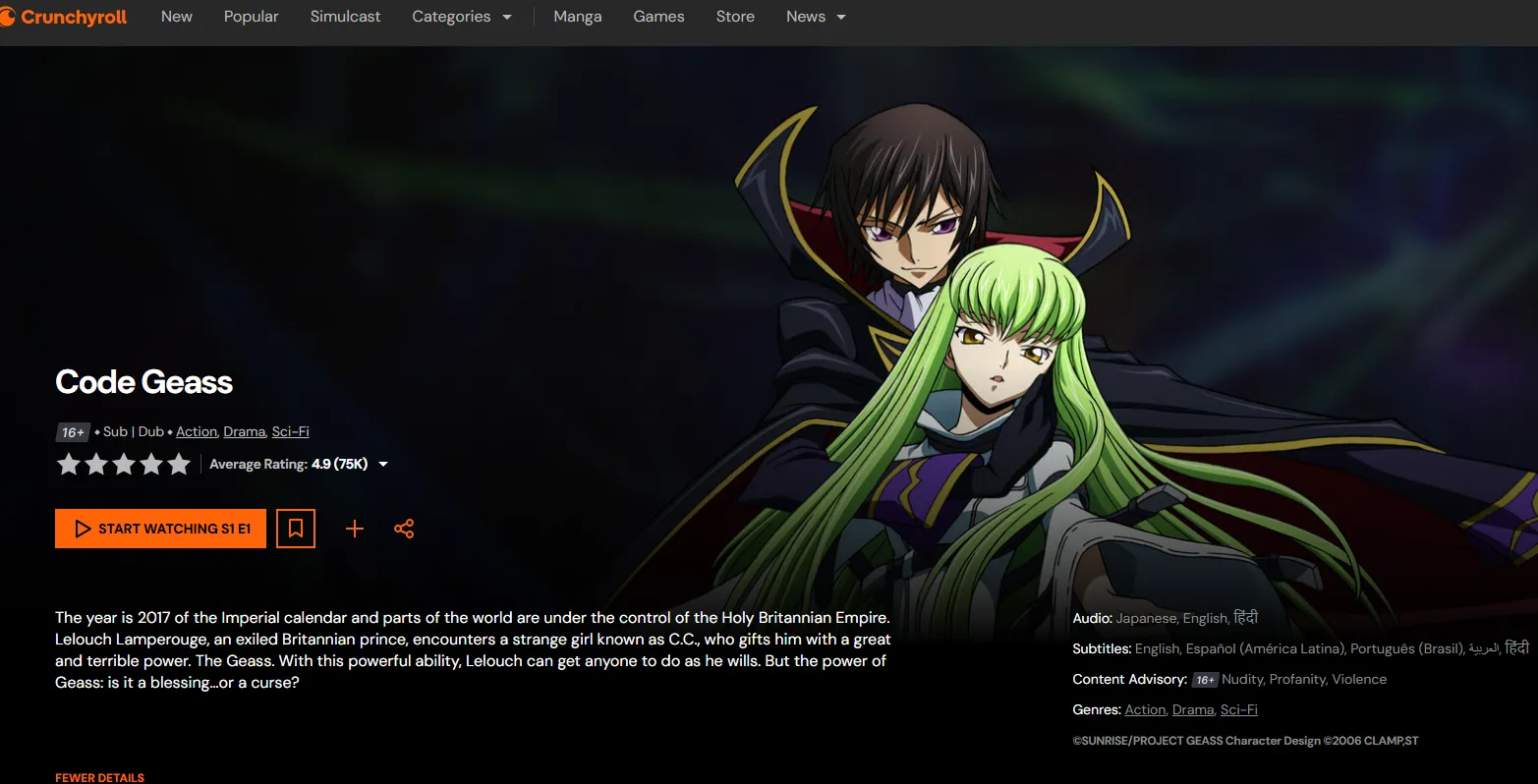 | 2006 | Code Geass: Lelouch of the Rebellion | Tactical brilliance meets anti-hero rebellion. Peak political drama. | Crunchyroll / Netflix | 8.71 |