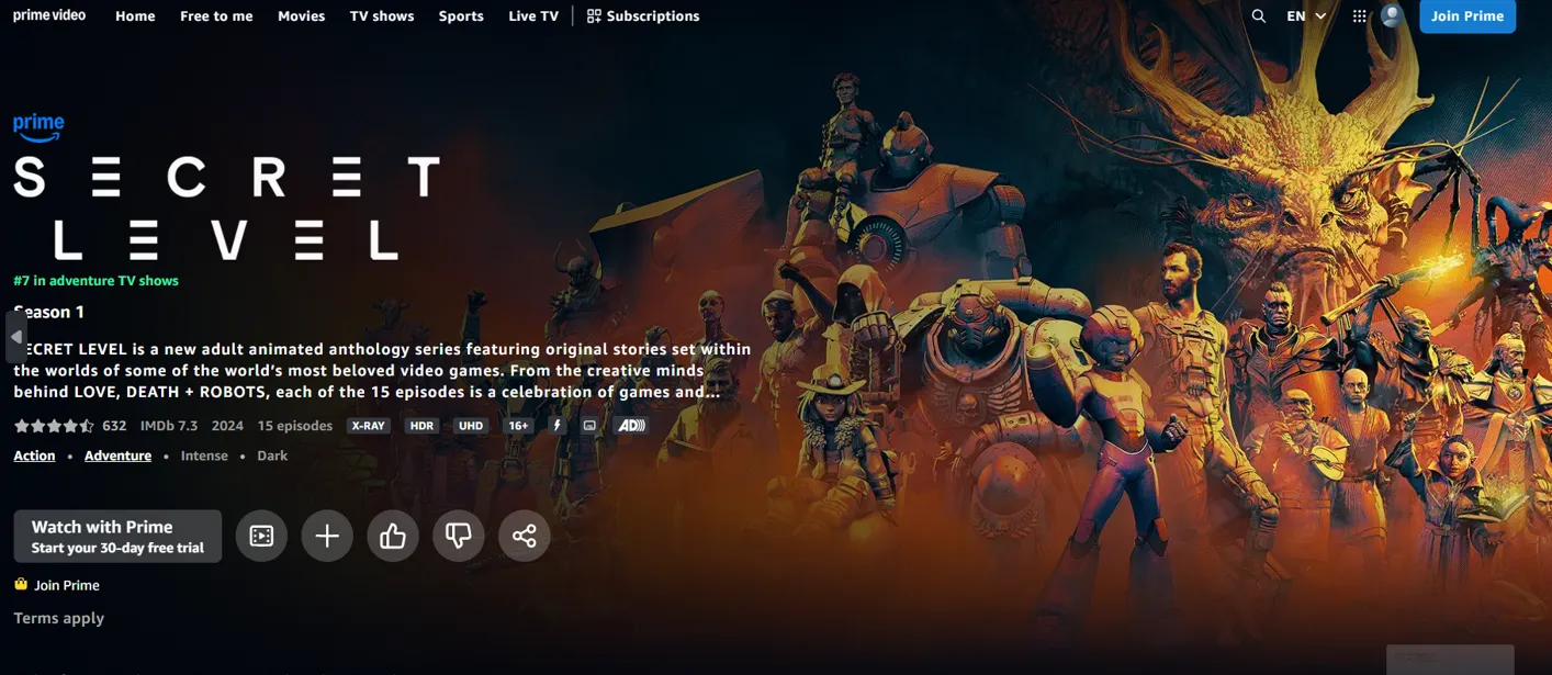 | 2024 | Secret Level (AC Episode) | From Love, Death & Robots creators. The ultimate modern AC visual. | Prime Video | / |
