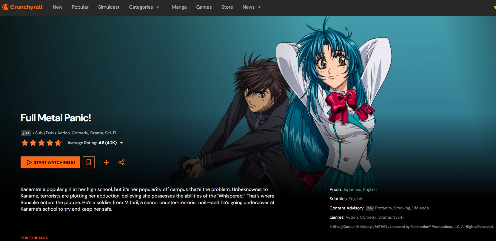| 2002 | Full Metal Panic! (2002–2018) | Special-ops mercenaries using customized "Armored Slaves." | Crunchyroll | 7.59 |
