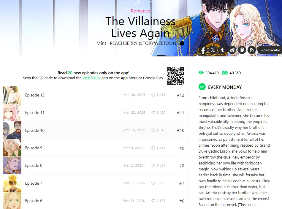 | The Villainess's Stationery Shop | Entrepreneurship, Healing | The ultimate "Comfort Read" of 2026. Snacks over schemes! | Tapas | 7.38 |