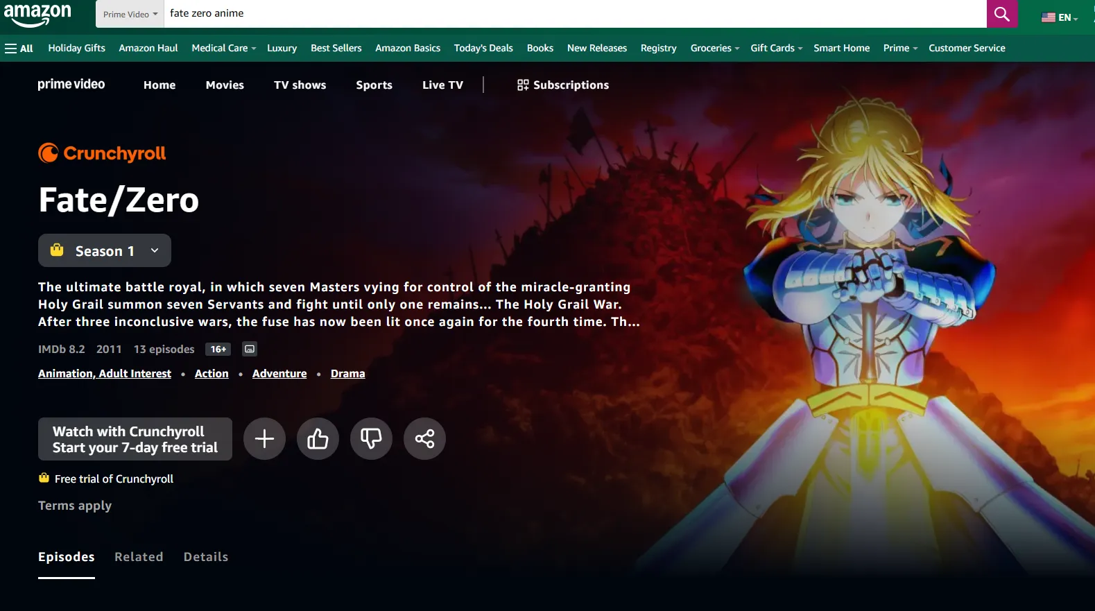 Basic Overview:Amazon Prime Video offers licensed Fate series content, including Fate/stay night: Unlimited Blade Works, Fate/stay night: Heaven’s Feel I–III, Fate/Zero, and selected Fate/kaleid liner Prisma☆Illya OVAs/films. Some titles are included in the standard Prime subscription, while others require separate rental or purchase. The platform supports HD streaming and multi-device access. Advantages include convenience for existing Prime members, while limitations include additional fees for certain titles and less comprehensive coverage compared to anime-focused platforms. Prime Video is ideal for fans already subscribed to Prime or looking to purchase specific movies or OVAs.