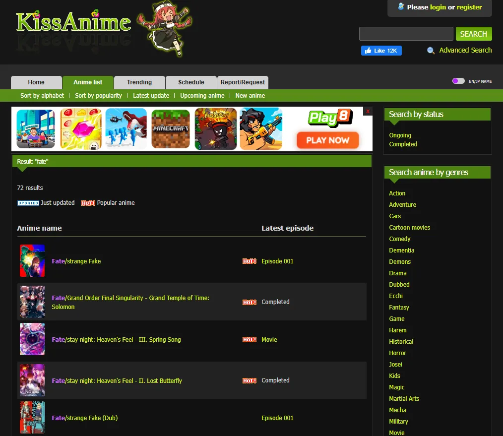 Basic Overview:Kissanime was historically one of the most famous anime streaming platforms, offering a massive library of TV series, movies, and OVAs. Although the original Kissanime website has been permanently shut down, many mirror or clone sites now exist, attempting to replicate the original platform. These mirrors often provide access to all Fate series seasons and movies, including mainline TV series, films, and some spin-offs, with updates usually appearing shortly after official release. However, these are entirely unofficial, with varying video quality, completeness, availability, and potential security risks.
