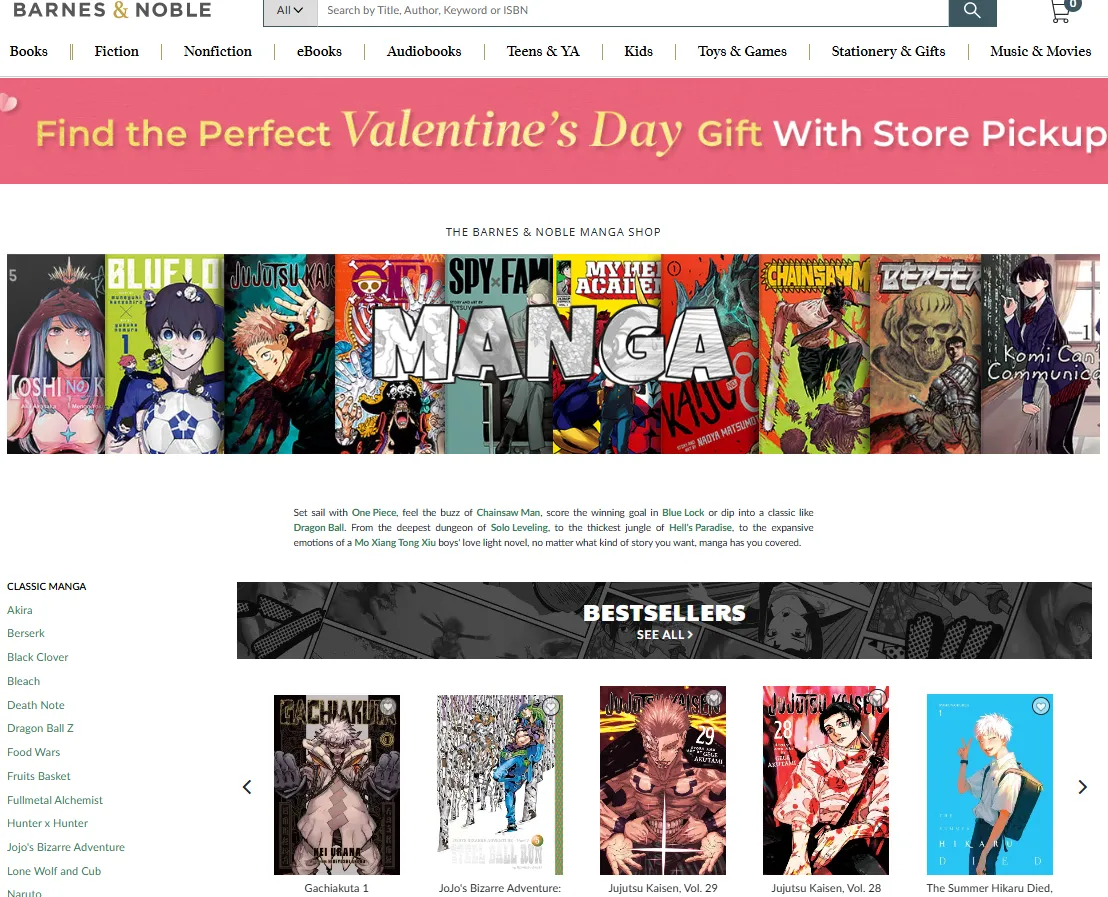 Basic Overview:As the largest retail bookstore chain in the United States, Barnes & Noble has become a primary hub for manga fans who appreciate "premium" physical books. They are best known for their beautifully curated "Manga Shop" and their commitment to high-quality hardcover releases.