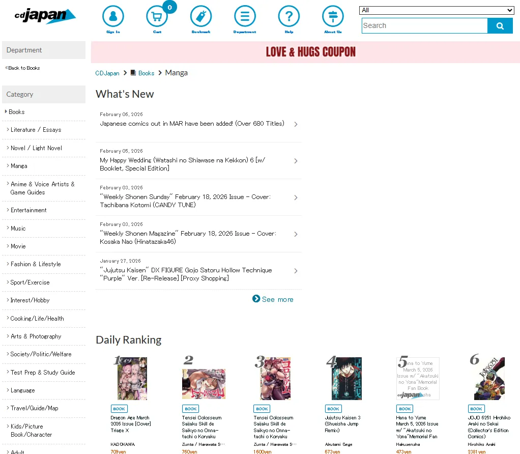 Second-Hand Manga: A unique feature—they have a dedicated section for "Used" copies at deep discounts, which is great for filling gaps in a collection.