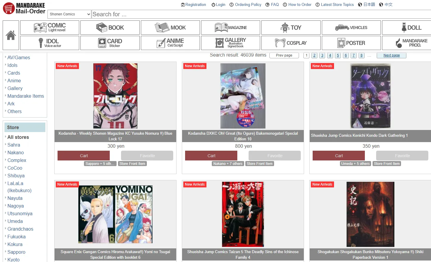 Manga Magazines: A rare source for buying the actual weekly/monthly magazines (B5 size) directly from Tokyo.