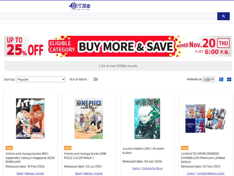 Basic Overview:BOOKOFF Online is the digital extension of Japan’s largest chain of secondhand stores. The platform offers a wide range of manga, from recent volumes to older, affordable editions. Its user-friendly website allows manga enthusiasts to browse thousands of titles conveniently, making it ideal for bulk purchases or building a collection on a budget. With regular updates and seasonal promotions, BOOKOFF Online caters to both casual readers and serious collectors. The platform’s interface makes it easy to search by series, volume number, or price, giving buyers full control over their selection.